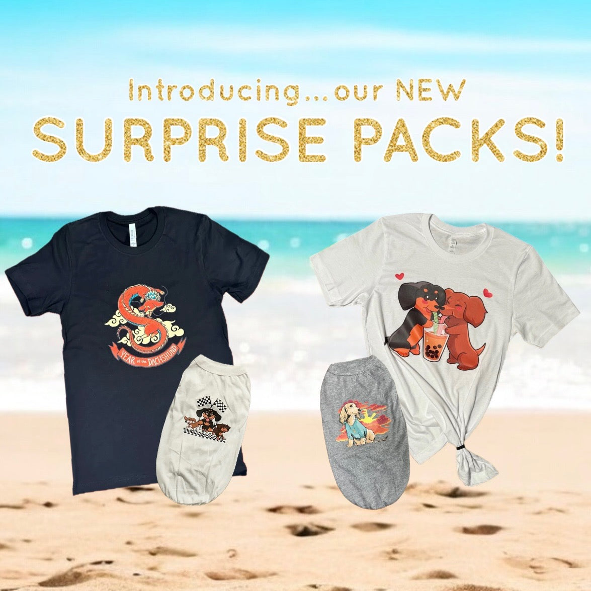 Human and pet items may or may not match with each other and will be selected randomly based on availability of collections and sizes. Some products may include never released designs or new color tees. If you purchase multiple packs, we will try our best not to duplicate items.