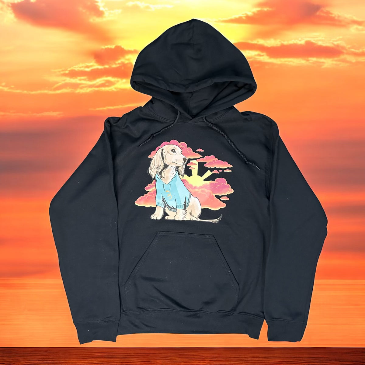 Dachshunds shine brighter than the beauty of a sunset. Enjoy the best time of day in this beautiful hoodie.