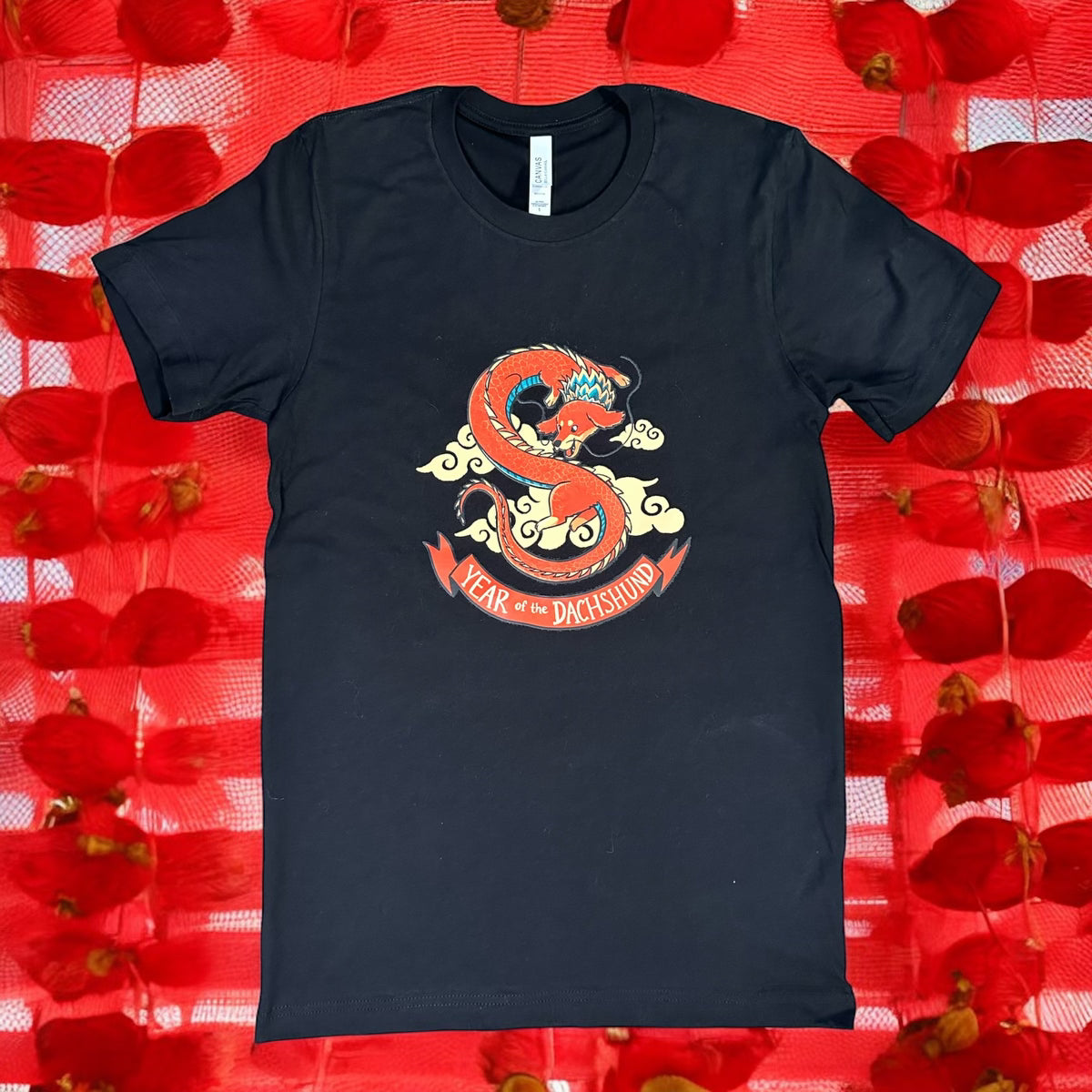 Every year is Year of the Dachshund in our world! With a magical twist of dachshund and dragon, this tee is perfect for everyone!